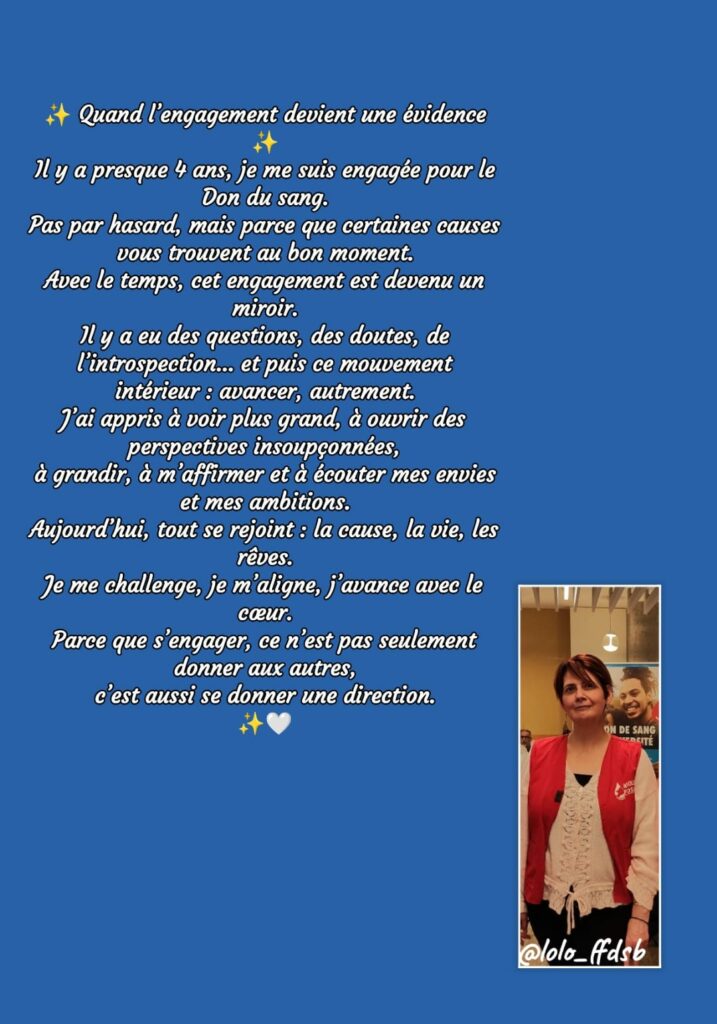 Il y a presque 4 ans, je me suis engagée pour le Don du Sang.